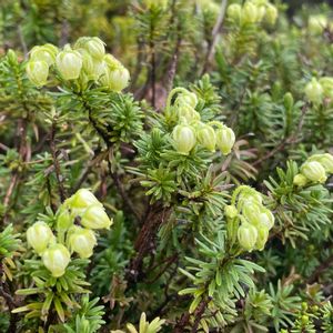 アオノツガザクラ(青の栂桜) ツツジ科 葉の形が針葉樹のツガ に似て花が黄緑色をしているのでアオノツガザクラ(青の栂桜) 身の丈10〜20cmしか伸びないが、立派な木の仲間。