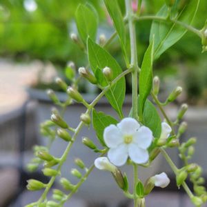 デュランタアルバ ホワイトラブ🌼 小さな蕾が膨らんできました🤗 冬越しして2年目の開花が待ち遠しい🤍 冬には玄関の中でカリカリになって 葉っぱも全部落ちてたけど🍂 今は四方八方に枝が伸びて 置き場所に困るくらい💦 でも雪国だから地植えはできないよね~😅
