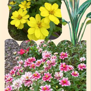 ジニア 🌿💛🩷💮🌿🌸💮💛🌿💛🌸💮🌿 5月からずっと咲き続けて いる ジニア、今も こんなにいっぱい咲いています😃🌸🌿