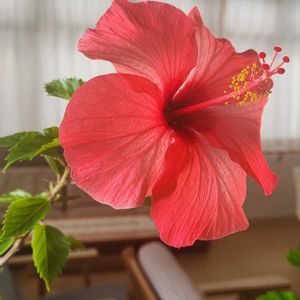 こんにちは☺️ 朝 職場に来たら 室内に入れたハイビスカス🌺が咲いてて…♪ 仕事やる気スイッチ押してくれました😂 2枚目 同じく今朝咲いてた自宅のピンクレディー🌺 同じ赤でもピンクレディーは、濃いです😊 あと半日~ 午後も頑張ります😊