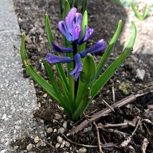 駐車場の脇に咲いていた ヒアシンスさん❣️ ヒアシンス? ヒヤシンス? どちらも正しいそうです。 ハッキリして欲しいけど🤣 密かに咲いていました。 愛犬が見つけましたよ.。o(♡︎)