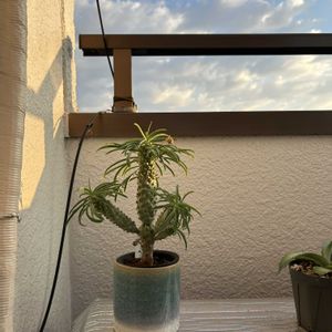 ユーフォルビア・ブバリナ。 一年ほど前にdcmでなんとなーーく連れ帰ったこのひとは、まあ頑丈。 午後から夕方まで直射日光当たりっぱなしのこの位置で、むしろ元気。 新芽など出してくれました。 ウェブで調べてみてもメルカリで探してみても、あんまり出品されてないみたい。たぶん。 あんまり人気ないのかなー。 恐竜の時代の植物、みたいな姿でかっこいいと思うんだけどなー。 🪴エリア▷ベランダ