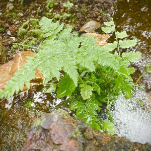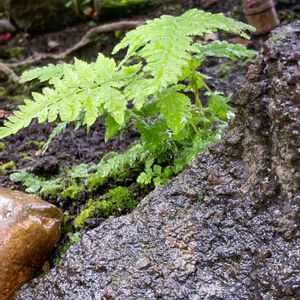 目の前にある坪庭に シダ植物の様な葉が🌱 お出まししました 何かわからないけど 和の雰囲気が醸し出され いい感じです♪