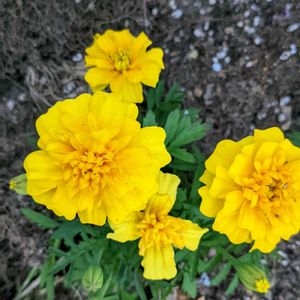 お疲れ様でした。 マリーゴールド 花壇に植えました。 黄色の色でまとめました。