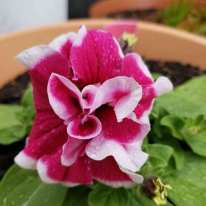 我が家のペチュニア咲きました~🥰🙌 八重咲きよ~フリフリ😆🎶💕 あと二色あります。そちらももうすぐ開きそう♪楽しみ楽しみ(*´∀`)♪