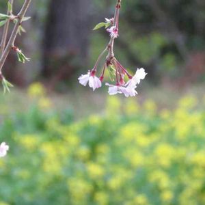 ソメイヨシノより一足早く 氏神さまの入り口でひっそりと咲く 今日は冷たい雨 今年の桜は わたしに笑いかけてくれるだろうか? さくら 人のこころを写す花