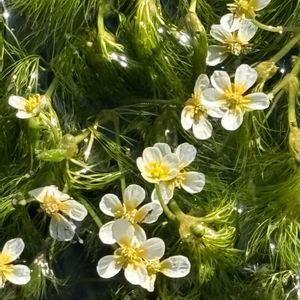 二投目は、バイカモ(梅花藻) キンポウゲ科キンポウゲ属 多年草の水草植物 イチョウ梅花藻の変種 今年も11月15日に見る事が出来ました♪ 本当は初夏頃に咲く花ですが、今年は雨が少な過ぎて川の水量が少なく、見に行った時には茶色🤎になり枯れ死寸前の状態、そこから復活してこんなにも沢山の花が咲いてました。 見れば見るほど梅の花に似てて、そこから名前が付いたそうです。 梅の花の藻 (梅花藻) 昨年は初夏に少しの花と、11月にと二度見てます😄✌️ 庭仕事の合間に散歩🚶♀️がてら街の中へ、いつもの場所での出会い梅花藻🤗魚🐟もいたよ😄 今日もお疲れ様でした♪ 明日も穏やかな一日をと言いたいとこだけど、明日は雪❄️荒れるのよね〜気を付けて下さいね^_−☆