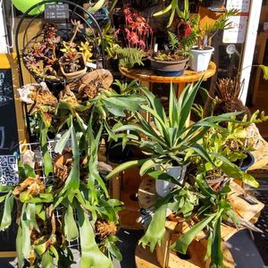 おはようございます。 本日も元気に開店いたしました。 入口ガラス壁の集合画像です~ ドリナリア氏にビカクシダお母さん組にヒカゲヘゴ氏など こう見ると賑やかですね~(笑 本日も皆様のご来店お待ちしております。
