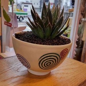 こんにちは。 バタバタしてまして こんな時間に成りました… 本日も元気に開店しています。 アガベ乱雪さんを茶器に仕立ててみました。 アガベ~和風と合いますね。 あいにくの天候ですが… 皆様のご来店お待ちしております。