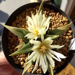 こんにちは。 アリオカルプス三角牡丹さんが完全開花しました~自家受粉…出来るかなと取り上げ受粉しとこ(笑