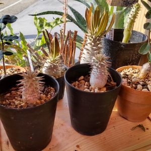 おはようございます。 本日も元気に開店いたしました。 直近でじしのあった関西神戸エリアです…お店の前を掃き掃除してまして…全く判りませんでした…(汗 パキポディウム実生軍団です。 ガラス際の特等席に並んで居ます~是非会いに来てくださいね。