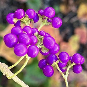 〜今日のお花〜 コムラサキ 🍀シソ科 ☘️ムラサキシキブ属 🏷️可愛い実 🏷️おしゃれな土曜日♪ 🏷️癒しの紫♡ こんばんは🎶 たわわに実る紫色の実 ゆふいん
