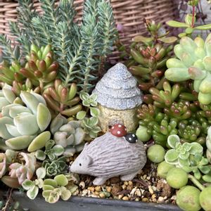 *多肉の箱庭* 去年の夏に箱庭を作る計画を立て、少しずつ準備をしてきました♪ 当初は大きな箱庭を作る予定でしたが断念…予定よりかなり小さいサイズになりましたが、可愛い箱庭が出来ました♡ 小道がまだ未完成です。 レンガを敷きたくてミニチュア小物があるお店も探しましたがありません。 これは自分で作るしか無いと思います。 粘土かなぁ?他には何があるだろう? 何かアイデアありますか? 今回使った多肉は我が家にあるものばかりで、新たに購入したものはありません。 pic 4 冬になる前に鉢減らしで作ったエケベリアの寄せ植え。この中から沢山使いました。残りで作りたいものがあります(^^) ❁.。.:*:.。.✽.。.:*:.。.❁.。.:*:.。.✽.。.:*:.。.❁