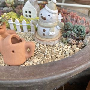 サツキが趣味のご近所さんがいます。 夏にゴミステーションでお会いした時、沢山の鉢を捨てていました。 お年を召して世話が大変になり、サツキをやめることにしたそうです。 欲しい鉢があればどうぞと言って頂きお庭へ。 小さめのを2つ頂きました。 前置きが長くなりましたが、その鉢で箱庭を作りました🏠 季節のものが飾れるように余白を広くしています。 雪だるまを飾ってみました⛄️ 春になったら何を飾ろうかなぁ〜😌 もうそんなことを考えています🤭 ここからは余談です(^^) 職場の近くにデイサービスの施設があるのですが、昨日お迎え用の車をスタッドレスタイヤに交換していました🛞 こちらではまだ早いような気もしますが、そんな季節になったんだなぁ🍂🍁⇨❄️🌨️⛄️ 昨日の午後から冷え込んできました。 今日から数日の最低気温が1〜2℃🥶 体調管理に気をつけて過ごしたいですね❣️ . . 𖥧 𖥧 𖧧 ˒˒. . 𖡼.𖤣𖥧 ⠜ . . 𖥧 𖥧 𖧧 ˒˒. . 𖡼.𖤣𖥧 ⠜