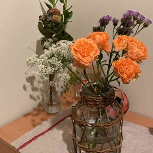 沖縄・さざ波硝子店さんのお気に入りの花器に投げ入れした、「姫平江帯(ヒメヒゴダイ)」でおはようございます🍃💜🩷🤍💜🩷🍃 "姫平江帯"は、ロシアの沿海地方やサハリン、モンゴル、中国、日本などに分布するキク科の二年草🇷🇺🇲🇳🇨🇳🇯🇵 姫平江帯と千日紅はどちらも秋に咲き、一見よく似ていますが、前者はキク科の植物で後者はヒユ科🌸🌼 ヒメヒゴダイは背丈がより高く、花穂は咲き進むと長い紐状にぶら下がるように咲くのに対して、センニチコウは30-40cm程の草丈で、花穂も球状または楕円形でクローバーの頭のような形をしていることが見分け方のコツですね🌟 低山から山地や海岸の草原などの日当たりのよい場所に自生していることの多いヒメヒゴダイですが、個体数がもともと少ないことに加えて、鹿の食害や過度に進んだ開発による生息地の減少などの要因が複合的に重なり、近年では「絶滅危惧種」に指定されてしまったそうです😔💓🌱🦌🌏 ー花言葉は、「実らぬ恋」、「野生の美しさ」…他。