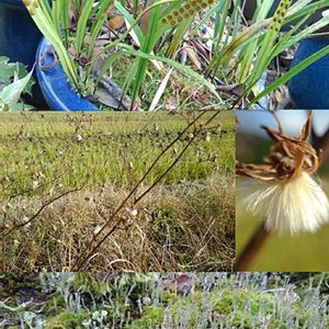 うちの実家の鉢に、葉の裏がドットになっている植物が。 こんなのあったかな? 母に聞いてみましたが、雑草だと。不思議~。 前身がなんだったのか忘れましたが、冬になると枯れて下向きにまとまって綿毛が出来る植物の、この綿毛の形が好きです🎶 苔の胞子官(?)がさらに苔むしていい感じ♪*゚ どれひとつ名前がわからなくて申しわけない😅 ※教えて頂き1番上は「ノキシノブ」というシダだとわかりました🌿茶色いのは胞子みたいです。