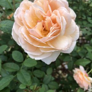 バラ園にて、イギリス🇬🇧製のバラ「グレイス」をパチリ!📸😊 アプリコット色のお花が輝いていました。🏵️🌿🤗🌞