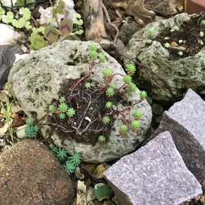 去年ぐらいに庭の一部のロックガーデン風のとこに植えて放置してた万年草さん。 なんかちょっといい感じになった😅