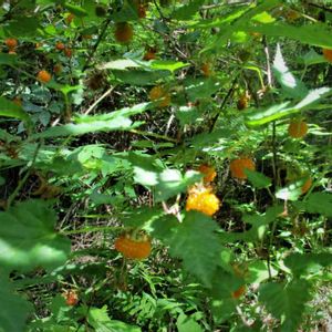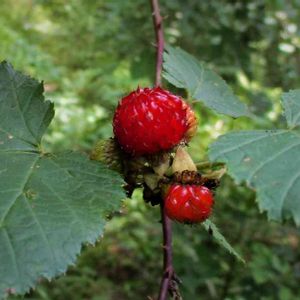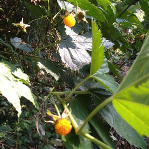 ナワシロイチゴ よく行く、レストランの裏にナワシロイチゴがいっぱいなっていました😆 完熟していましたが、モミジイチゴほど美味しくなかったです☺️