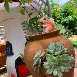 こんにちは😃 ストロベリーポットに木苺🍓と多肉ちゃん達を寄せ植え💕 🍓ができるのをりすさんも心待ちにしているよ🥰