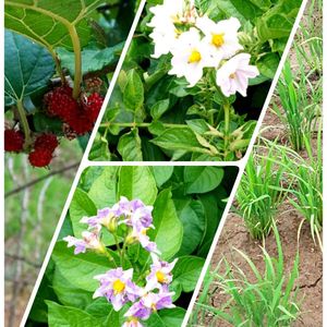 おはようございます😃🎵 左から 木苺🍓 じゃがいも花🥔 稲🌾