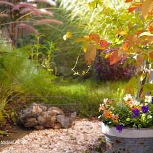 『ビオラ』 思いつきで作っちゃったミニコーナーへ ちょこんとビオラも植えてみました♡ 赤や黄色になり行く庭の色と一緒に遊んでもらえたらと アンティークな紫色を選びましたよ🌿 この場所で 春先に球根からコンニチワも素敵かなと 昨年のコロコロを抱えて行ったり来たり 新しい🌷もお迎えしたい 妄想もあちこち駆け巡る 嬉しい楽しいひと時でした♡ 今日も素敵な1日になりますように (*ˊᵕˋ*)੭ ੈ