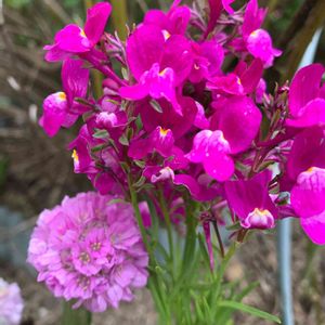 「ピンクハンター」② リナリアとアルメリアのピンクボール 寄り添うように咲いてます。