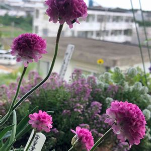 ピンクボール アルメリアです💮 本当にボールのようにまん丸です😊 草丈40~60cmになるとの事💮🎵 大きく沢山増えたら嬉しいです🎶😉