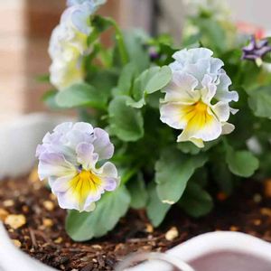 フリル咲きビオラ 恋みやび。 優しい色合いに一目惚れ😍 お一人様植えにしようか、寄せ植えにしようか思案中です😅
