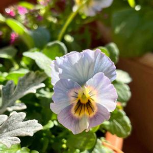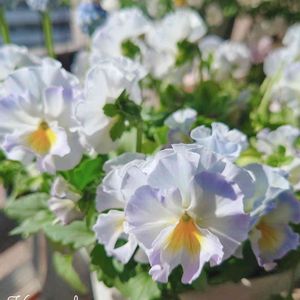 寒い時期はお花が休みがちだった"ビオラ 恋みやび" 3月に入り、かわいらしい水色の花が、たくさん咲き出しています。 中心の黄色がアクセントになって、春らしささらにアップですね♪