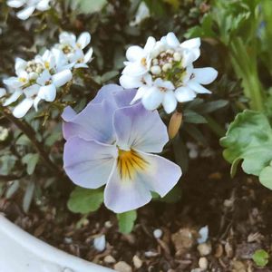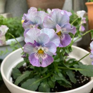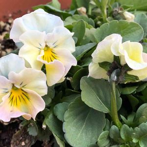 一緒に植えてる、隣の“恋みやび”と色違いだけど こちらのビオラは成長がゆっくりです。 お迎えした時はブルー系だったのに 暖かくなってきたらクリーム色系に変わってきました😅