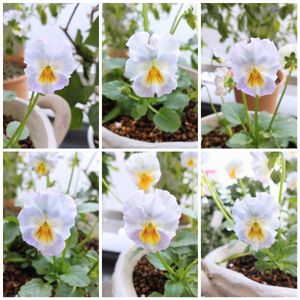花日和さんのビオラ、「恋みやび」✨✨ すこーし徒長が気になっていたのと、InstagramやYouTubeでやり方を教えてくれてたので、思い切ってピンチしました✂️ ピンチ前に、みんなのお顔をパシャリ📸 また綺麗に咲いてくれる日が楽しみです💕