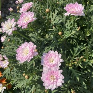 こんばんは〜✩︎⡱ 今日は暖かかったですね😊 サントリーフラワーズさんの ボンザマーガレット サクラ🌸 いっぱい咲いてきました。 お花が丸ッとかわいいんです。 色もサクラ色🌸で癒されます😌