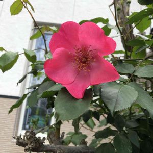 こんにちは😃/ 風🌪️が強いですが、 良いお天気です♪ 写真1枚目 一重のバラ 私の1番好きな🌹です。 写真2枚目 スーパーでみかけた これは、カラーかな??? 写真3枚目 種蒔きからの ミニダイアンサス 写真4枚目 玄関門外のバラ❣️ スゴイ数の花芽です🩷