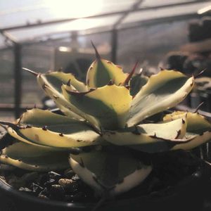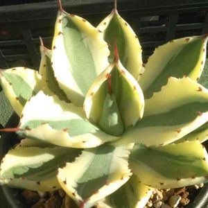 302(^ω^)guyさん素敵便続きまして、 アガベ 吉祥冠錦 スーパークラウン紹介! Agave potatorum 'Super Crown'(゚∀゚) アガベ吉祥冠錦【A. potatorum Kisshou-kan' f.variegata】のたまらんバージョン(笑) ワイングレーな刺で、外斑が黄色〜アイボリー\(//∇//)\独特の色味でたまらんです! 花が咲いてなくても、魅せるアガベ! 美しい!斑つくしい*\(^o^)/* スーパークラウンはいいぞ! アガベはいいぞ! ⁽⁽٩( ᐖ )۶⁾⁾ ₍₍٩( ᐛ )۶₎₎