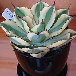 買っちゃった…吉祥冠錦 アガベは昔から知っていたけど 私には「大人」過ぎて…😅 何だろうもう雰囲気からして 圧倒的な美しさってか 特に斑入りとかの 「誰が見ても絶対美人だと思う」的な 迫力が尻込みさせると言うか…😅 しかし❗私も大人になったので (大人どころの歳じゃないけど(笑)) 図々しくなって スゴイ美人にも厚い面の皮で近づいちゃう😆 何かアガベのイメージ的に いつでも品があって 10年前も今も たぶん10年後もその場所で ウフフと笑っている作られた美しさ‼️ そう銀座の高級クラブのママのように‼️ 何年もクラブの扉の前でウロウロしてたけど ついに入店⁉️😅 もう美しさと威厳にひれ伏さんばかり(笑) 美人の維持には手間と金がかか… いえ❗何でもありません‼️ガンバリマス