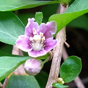 クコ(枸杞)の花がまだ咲いていました。 通常は7月から9月頃に花をつけるそうです。 竹やぶの縁沿いの道を散歩中、可愛い小さなお花が目にとまりました。1センチ程の小さな花です。 はじめましてのお花です。 帰宅後、AIに教えてもらいました。