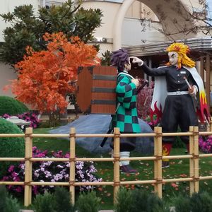 USJにて、鬼滅の刃エリアの「カエデ」が紅葉していました。煉獄さんの髪のようです。🍁🤗😊😄✌️
