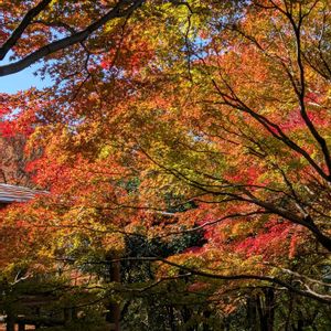 🔵青空と紅葉する🟡イチョウと🔴カエデです。 真言宗 清龍山清圓寺