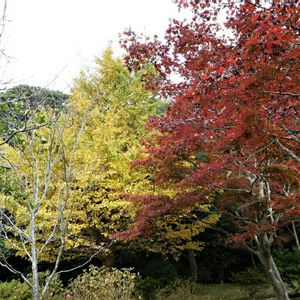 イチョウ黄葉とカエデ紅葉のコラボレーションです。 明日の☔天気で、散らなければいいですが😢