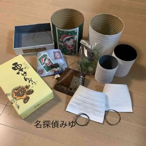 たかりえさんから、素敵便が届きました🎁 大好きなコナンをデコパージュしたクリスマス用のリメ缶や私がすぐに色塗りできるよう下準備してくれたリメ缶です💖 栗せんべい、届いてすぐに美味しくてあっという間に食べちゃいました😆