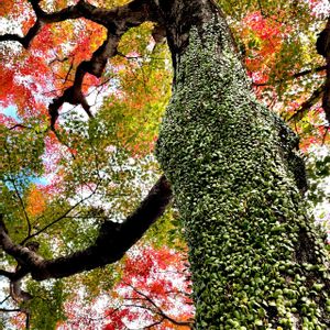 ゚+。:.゚おぉ(*゚O゚ *)ぉぉ゚.:。+゚ 綺麗に色付いたもみじの木に、マメヅタがたくさん着生しています( ö )˶˶꒳ᵒ꒳ᵎᵎᵎ 寄生と違うので、この木から養分をとることはないそうですよ😚ホッ💨 マメヅタよりも、見事な紅葉を十分に愉しまないと……(•͈⌔•͈⑅)♡ウットリ🌿🍂🍁✨✨ 🏷巨木古木の木曜日 参加させていただきます🌳