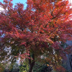🏷あっ火曜日 モミジの紅葉🍁 まだ赤いのはあまり見ないけど、日当たりなのかな?枝の先の方だけ、綺麗に赤くなっていました🧡❤️🧡❤️ 昨日投稿の大きなイチョウのある公園にて。