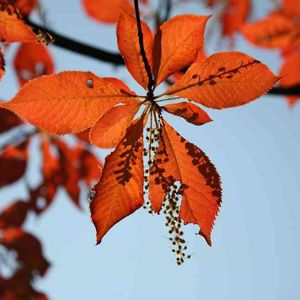 真っ赤に紅葉しています。 木の名前をお教えください。 ハナミズキかな? 実はついていません。