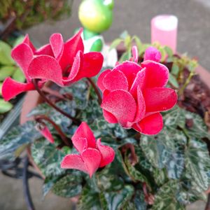 おはようございます どんより曇りで寒くなりました ホームセンターで色にくらっとして お迎えしたガーデンシクラメン🌸🎵🎶