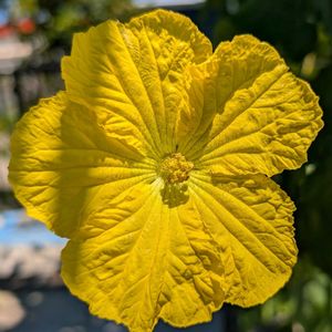 あるお宅の壁にヘチマの花が綺麗に咲いていました💛 鮮やかな黄色が映えますね✨