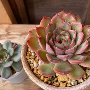 昨年お迎えした時 葉が長くて大きくて、二回りもいで葉挿し 葉挿し率100%オソルベシ 今年は少し締まっていい色が出てきたよ 左が冬に葉挿ししたモーサン 若いお顔も可愛いです