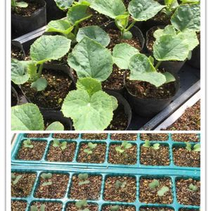 本日、天気も良かったので 畑へ 上がメロンの苗🍈 下がレッドキャベツの苗です〜〜