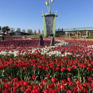 オランダに来ています うそです😅。゚(゚´ω`゚)゚。 富山 砺波チューリップフェア 入善町のチューリップ畑です 綺麗ですね〜〜 三枚目画像は 1、2枚目のチューリップ🌷タワー上からの撮影です お見事🌷🌷🌷絵巻 楽しい 悲しい アツイ 寂しい、、、、、 いろんな思いが甦る富山です