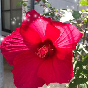 おはようございます😃 これも 妹から…😚大きくて ふわふわだそうです😊 とても綺麗な赤🌺です。 お名前なぁに❓